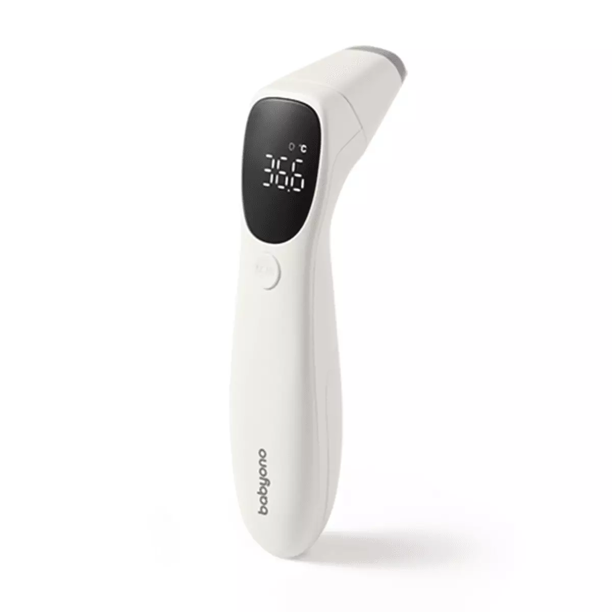 Det berøringsfrie termometeret fra Babyono lar deg raskt og presist ta temperaturen fra pannen eller øret.