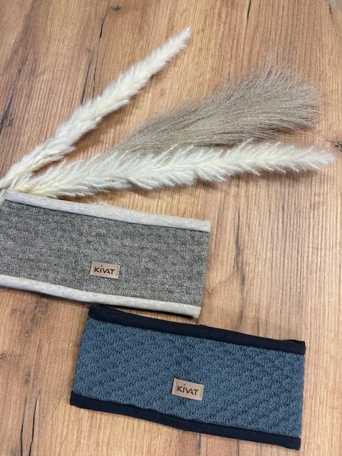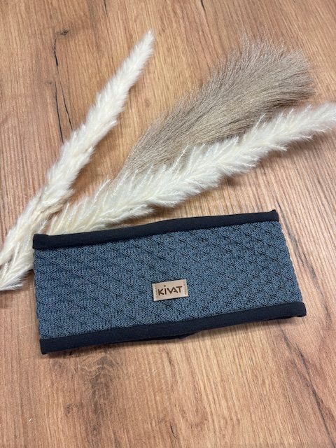 Kivat ull pannebånd | gråblå vaffelstrikk