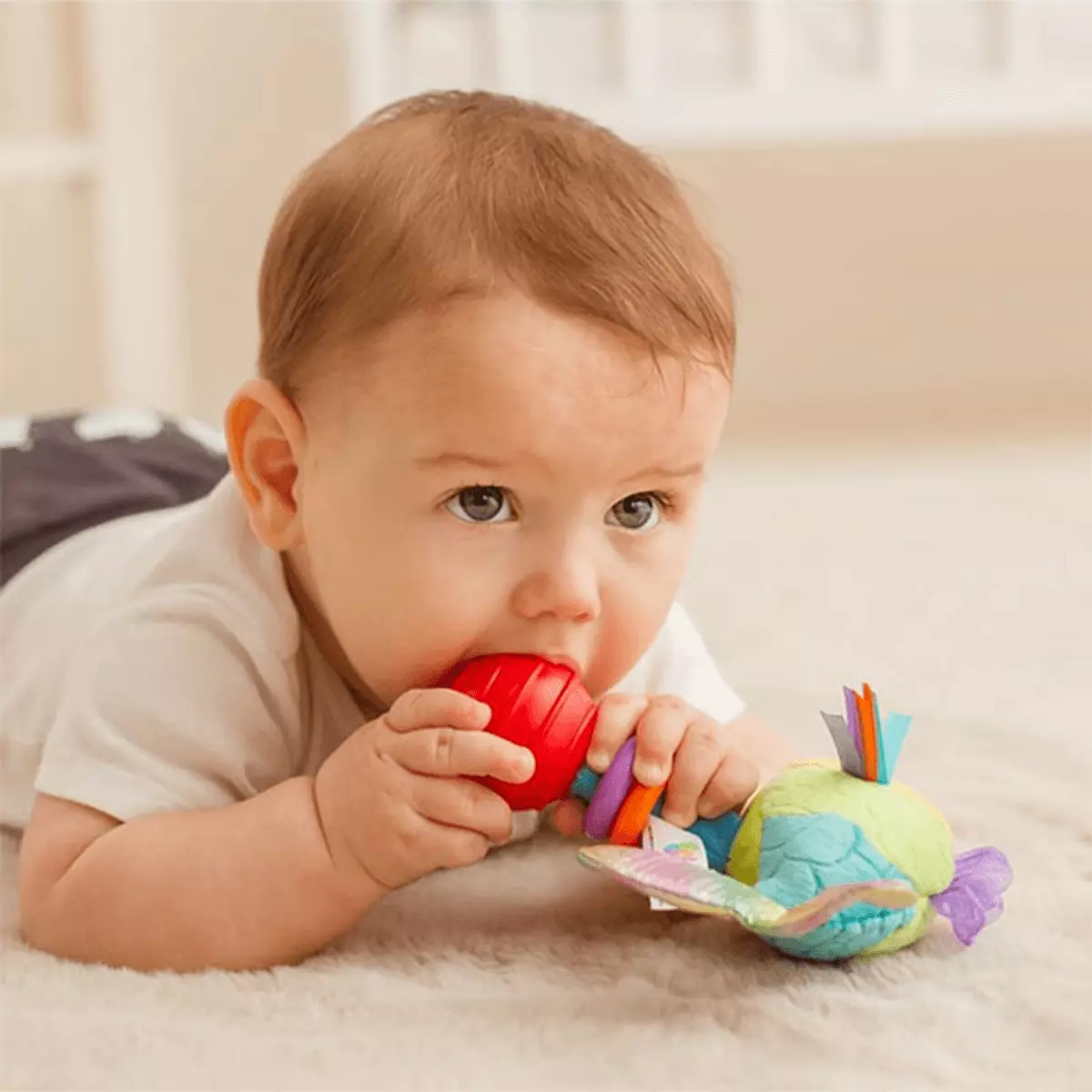 Sjarmerende Felicity elsker å rasle med halen og svømme i vei! Hun er laget av fargerike materialer med varierte teksturer som stimulerer barnets syn og berøring. Fisken sitter på en strukturert ball som gjør det enkelt for små hender å gripe. Når man dytter på henne, svaier hun i alle retninger og lager glade raslelyder – en fryd for nysgjerrige smårollinger!