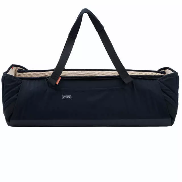 Utsiden er laget av resirkulert polyester, og bunnen har en beskyttende overflate som kan tørkes av for å holde den ren i hverdagen. Toppdekselet er vind- og vannavstøtende og gir ekstra beskyttelse, som enkelt kan tas av med glidelås. Den innovative funksjonen til Voksi Soft ReleaseTM gjør håndtakene tilgjengelige bare når hjørnene er låst og brettet opp. Denne funksjonen gjør bæringen sikrere, da du trekker opp hjørnene når du bruker håndtakene. Når du løsner hjørnene for å gi mer plass til babyen, er soft release-funksjonen lydløs, slik at du ikke forstyrrer babyen når den sover. I Voksi Carry Me er det enkelt å løsne hvert hjørne individuelt, ved å åpne på siden eller i fotenden, for å skape en koselig plass for babyen.
